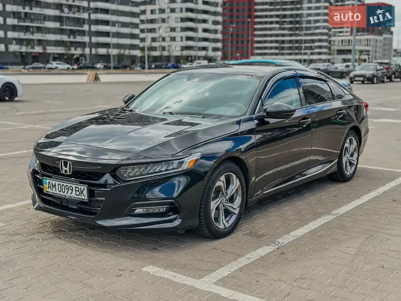Описание Продам свою HONDA ACCORD EXL(TOURING) 2019. 2.0 Turbo. Пробег 45 тыс. км. Предтоповая комплектация. Чёрный на чёрной коже. Бесключевой доступ, Start/Stop без ключа. Дистанционный запуск двигателя. Двойной передний стеклопакет. Двухзонный климат-контроль, GPS навигация, мультимедиа (apple car play, android auto, bluetooth, USB, hands free и т.п.) 10 динамиков, Камера заднего вида, датчик слепых зон, адаптивный круиз-контроль, датчик дистроник (радар), торможение перед препятствием, удержание/подруливание в полосе движения, контроль давления в шинах, электропривод водительского (с памятью для каждого ключа) и пассажирского сидений, подогрев передних сидений и зеркал, люк. Зимняя резина Continental на 17" дисках. Ходовая, двигатель, АКПП в идеальном техническом состоянии. Пройдено ТО. Замена фильтра и масла Honda 0W20 каждые 7-8т.км. Все кузовные детали оригинальные и промаркированы защитными наклейками. Расход топлива в спокойном режиме по г.Киев 8 - до 9л.