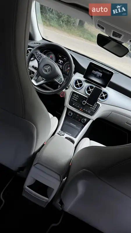 Светлый салон этого Mercedes редкий вариант для CLA, ведь большинство таких авто имеют темный или комбинированный интерьер. Здесь — элегантная бело-серая кожа с перфорацией, выдержанная в минималистичном стиле Mercedes-Benz. В сочетании с черным глянцевым кузовом это выглядит роскошно и контрастно, как в моделях класса выше.