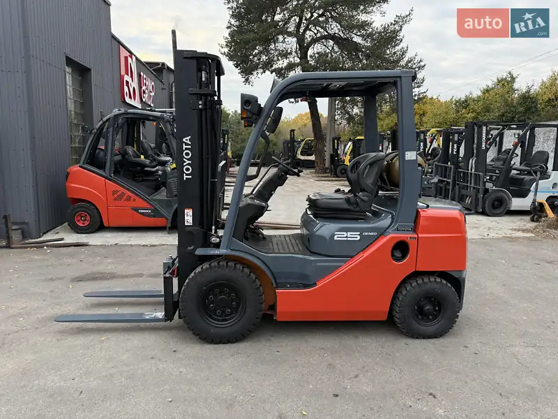 Описание Вилочный погрузчик Toyota 8FG25 Год выпуска - 2012 Грузоподъемность – 2500 кг Высота подъема - 3000 мм Тип привода – газ Коробка автомат Боковое смещение (side shift) Погрузчик готов к работе. Проведено техническое обслуживание. На территории Украины не эксплуатировался. ЦЕНА с НДС
