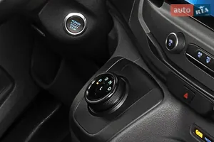 Такой селектор заменяет традиционный рычаг, упрощая управление трансмиссией и экономя место в кабине. Минималистичный дизайн обеспечивает быстрое переключение режимов движения и подчеркивает современность электрического фургона Ford. -