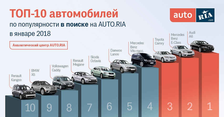 ТОП-10 автомобилей по популярности в поиске AUTO.RIA: