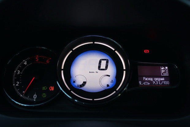 Плавно подбираемся к источнику главных споров и размышлений – мотору и коробке. Под капотом тестируемого Renault Fluence был 1,5-литровый дизельный мотор на 110 лошадиных сил, работающий в паре с 6-ступенчатой автоматической коробкой с двумя сцеплениями EDC. Мотор имеет солидный крутящий момент в 240 Нм, который доступен с 1750 оборотов в минуту, обеспечивает хорошую тягу, начиная с 2000 оборотов, которая не тухнет даже на подходах к красной зоне. Но здесь в тандеме мотор/коробка начинаются странности. 6-ступенчатый автомат в плавном режиме езды очень любопытно выбирает момент для переключения. За неделю знакомства я убедился в его любви к «зависанию» на отметках в 2-2,5 тысячах оборотов. Причем в моменты, когда разгон, как таковой уже прекратился – бери себе повышайся, да катись с минимальными нагрузками. Но EDC продолжает упорно висеть на 3-4 передаче при скорости в 60 км/час, наполняя салон гулом дизельного агрегата. Не раз приходилось брать управление в свои руки и повышать передачи насильно. Такая нерешительность наблюдается исключительно в плавном режиме вождения – если нажать на газ плотно и уверенно, трансмиссия будто просыпается и начинает работать четко и адекватно ситуации. Пусть и грубо – переключение происходит без лишних церемоний, резко, порой с бросками, особенно при понижении.