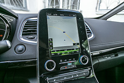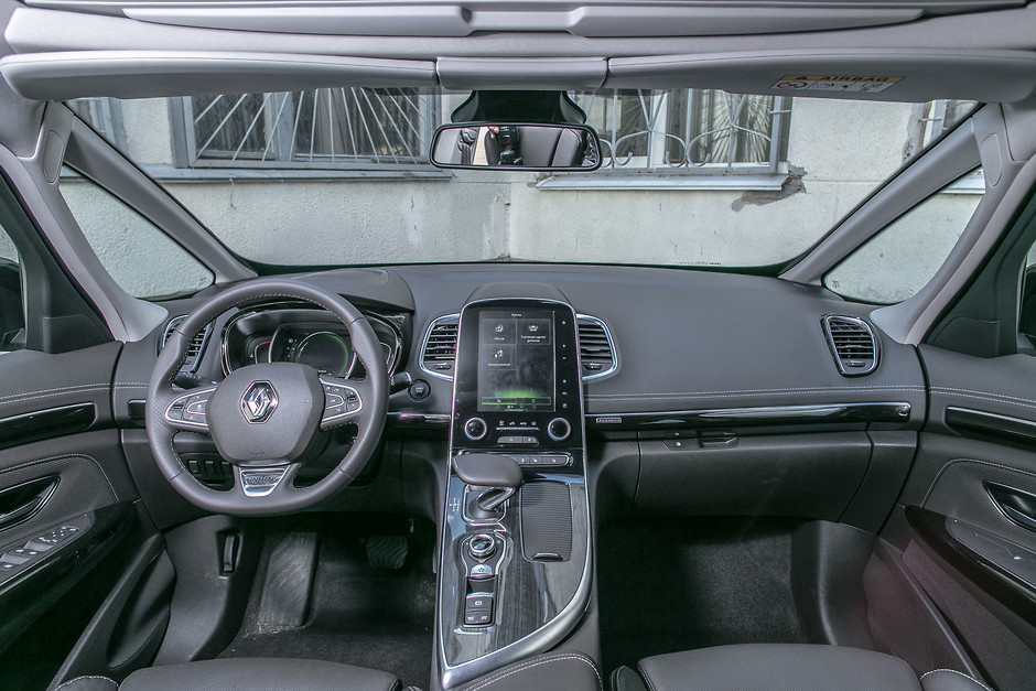 Но как бы ни был Espace красив внешне, только визит в его салон позволяет во всей полноте оценить замысел создателя. Дизайнеры интерьера, равно как и ответственные за подбор материалов, оказались людьми тонкими, с безупречным вкусом и чувством ответственности перед покупателями. Перетекающие в торпедо дверные карты, уютная приглушенная подсветка, превосходная кожа и мягкий пластик – именно то, чего ожидаешь от дорогого автомобиля. Главный элемент салона – изящная центральная консоль, разделяющая передних пассажиров: ее венчает большой сенсорный экран информационной системы с бесконечными меню настроек буквально всего, от режимов езды до выбора цвета салонной иллюминации. Внешне похоже, будто в машину встроили планшет – похожее решение мы впервые увидели живьем на Volvo XC90.