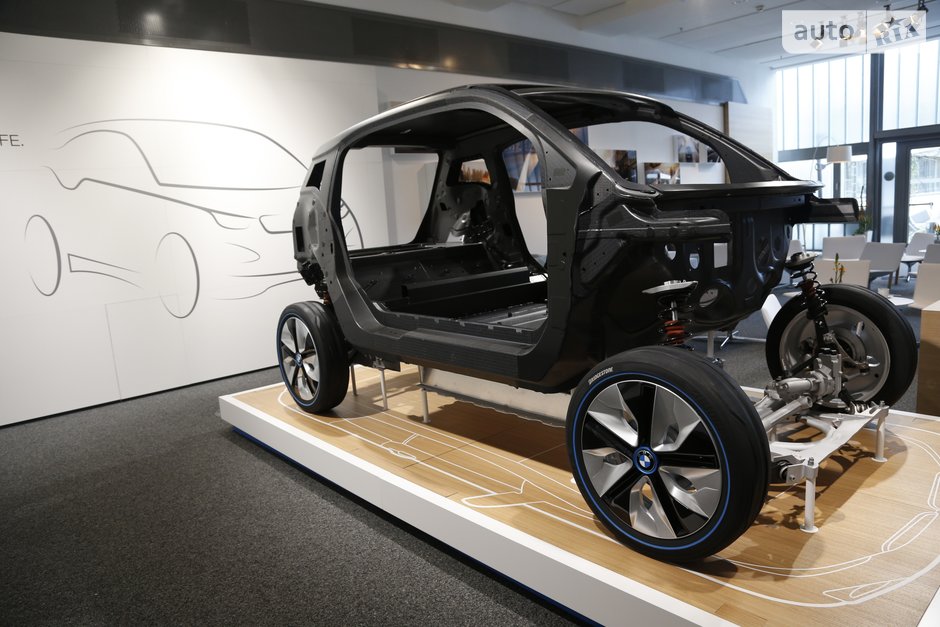 Немцы же предпочли припрятать свои карты в рукаве до выяснения обстоятельств: уже тогда, в 2008-м, в закрытом помещении техцентра в Майзахе журналистам впервые показали разобранный прототип футуристического городского электромобиля В-класса (концептом по имени BMW і3 он стал лишь в 2011-м, а серийным авто - еще почти через два года). Причем, “разобранным” он тогда был в прямом смысле слова: алюминиевое шасси с модулем батарей и маршевым электромотором мощностью 120 кВт стояло в одном углу зала, а выклеенный целиком из углепластика высокий кузов - в другом. Честно говоря, тогда, колеся по немецкой глубинке за рулем двухместного электроприводного MINI E (на месте заднего сиденья серийного переднеприводного MINI у “ешки” располагался массивный модуль тяговых батарей), я с трудом верил в то, что немцы рискнут и решатся-таки выпустить в свет настолько нетипичный для марки BMW продукт. К счастью, ошибся.