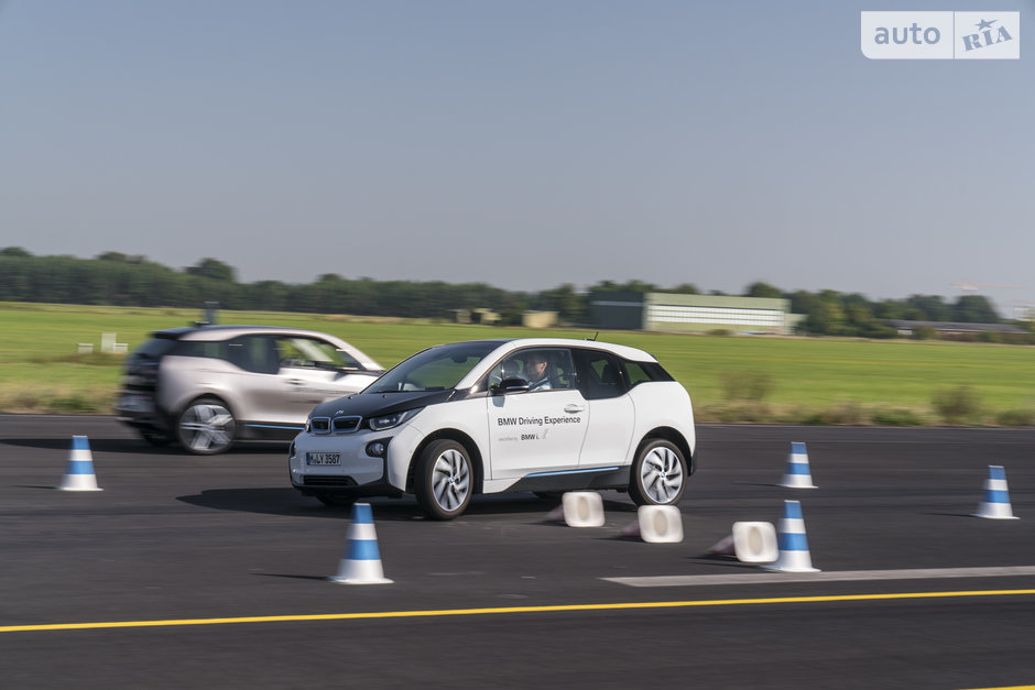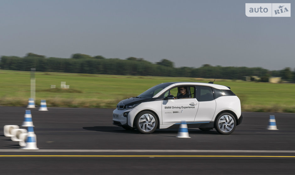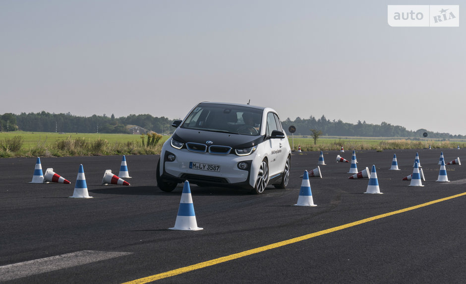 Как бы то ни было, до максимальной скорости в 150 км/ч “ай-три” разгоняется резво, хоть и без пушечного ускорения. Одна досада: в таком режиме “шоколадка” запаса заряда на приборном кластере за рулевым колесом тает на глазах, и рекуперацией на торможении ситуации уже не исправить. Удостоверившись в том, что “валить” на максимальной скорости по прямой нашему i3 не представляет труда, переходим к “фигурным” дисциплинам.