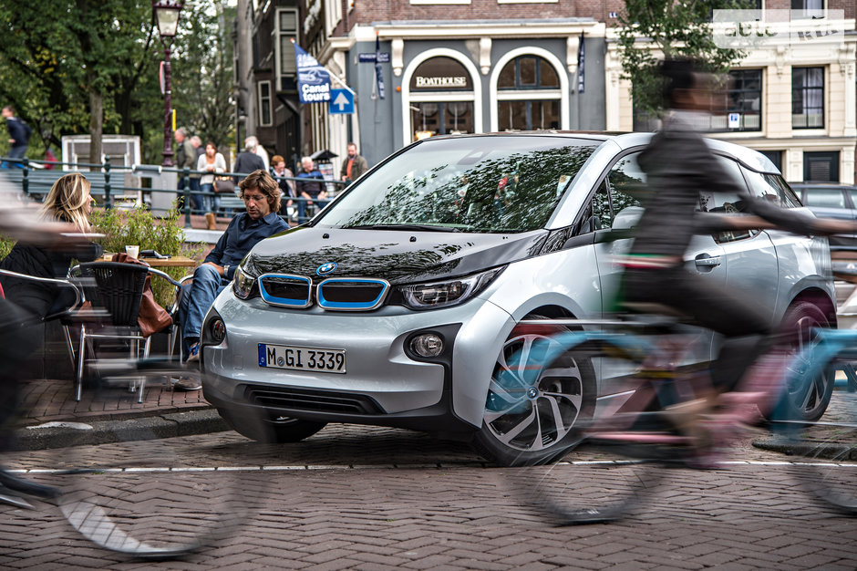 Короткий покатый капот, под которым нет ничего кроме толстого кабеля с разъемами для подзарядки, высокий четырехместный кузов с задними дверями-полустворками, распахивающимися навстречу движению как у Toyota FJ Cruiser или Mazda RX8, задняя стойка, на которой вместо фирменного “изгиба Хоффмайстера” красуется стеклянное “бутылочное горлышко”, - я бы не удивился, увидев на его корме шильдик Apple. И все же это BMW, причем, в отличие от новых баварских машин, построенных на платформе UKL, - заднеприводный. А вот сохранил ли i3 типичную для своей родни динамику и управляемость - сейчас и узнаем.
