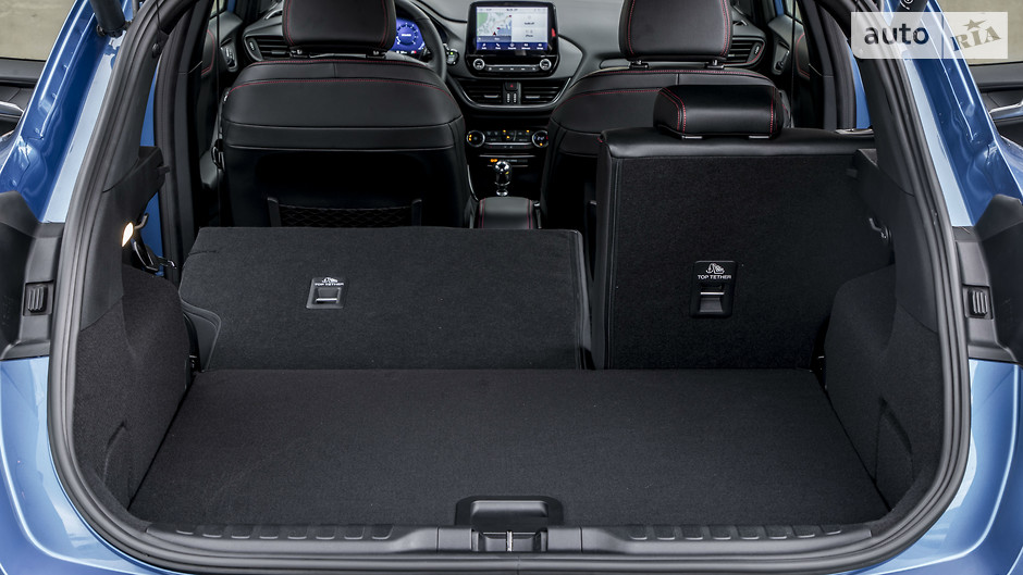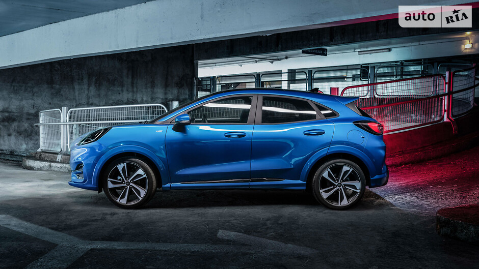 ST-Line от Ford Performance предлагается с 18-дюймовыми, а за доплату и 19-дюймовыми колесами с черным декором и спортивной подвеской. Решетка радиатора выполнена в черном матовом цвете с глянцевой окантовкой и такой же для противотуманных фар, дневные ходовые огни имеют другой контур, а на крыше присутствует более функциональный спойлер. Внутри у Puma ST-Line сплюснутый руль и красная строчка, в том числе для частично кожаных сидений. Подчеркивают спортивный характер также накладки на педали и алюминиевый рычаг переключения передач.