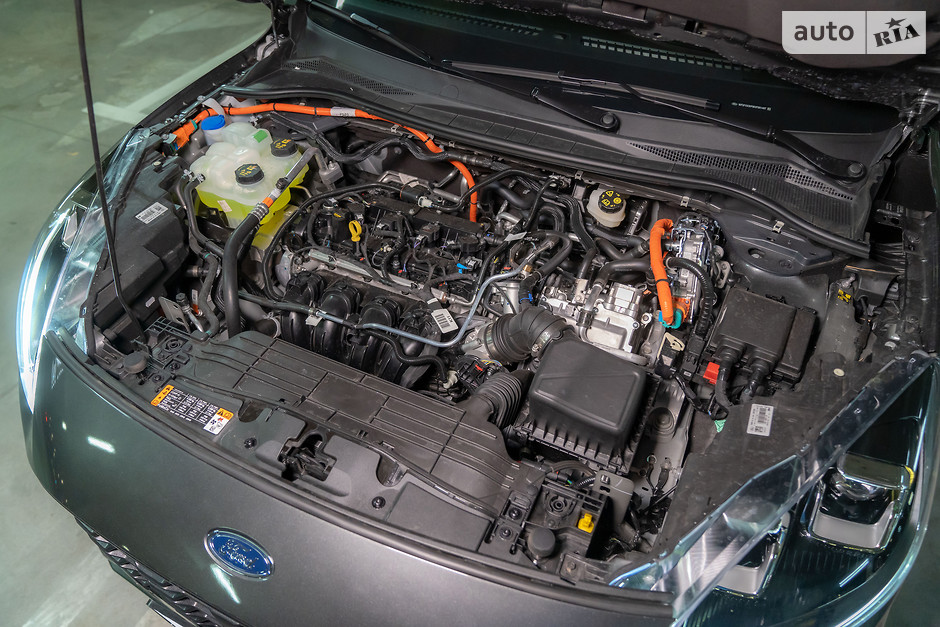 Машина на нашому тест-драйві — найдорожча в Україні: це повноприводний Ford Kuga у топовій комплектації ST-Line X, оснащений самозарядною гібридною установкою. Один з колег, поглядаючи скоса на тестовий кросовер, перепитав: «Це часом не MHEV, де від гібрида одна назва?» Анітрохи: одразу під капотом (дрібничка, але декоративної кришки двигуна на такі силові агрегати чомусь взагалі не встановлюють) розташований великий атмосферний 4-циліндровий бензиновий двигун Duratec на 2,5 літра, якому допомагає 125-сильний електромотор. Нівроку!