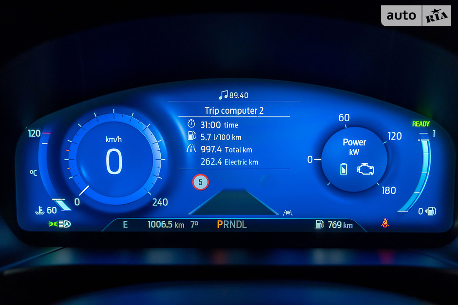 Попри відносно невелику ємність тягової батареї, електричний мотор втручається до роботи системи дуже інтенсивно: на гранично низькій швидкості (у заторі чи на паркувальному майданчику, сповільнюючись перед світлофором тощо) гібридний Kuga рухається переважно без допомоги ДВЗ. У бортовий комп’ютер навіть вбудовано рахівничок, який занотовує наскільки значну відстань автомобіль подолав суто на електриці, - і я щоразу зі щирим подивом відзначав, що принаймні третину кожної з моїх поїздок містом ДВЗ був вимкнений! Якби не сфотографував показники — сам би собі не повірив...