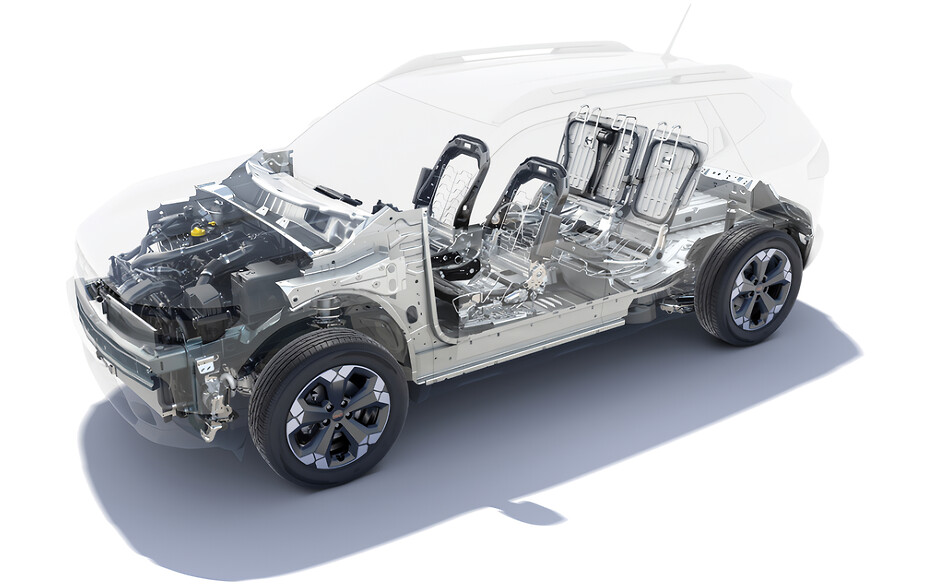 Словом, від попередника новий Duster відрізняється усім, — за виключенням габаритів. Дозволити собі вихід за межі сегмента SUV-B розробники не могли: 4,57-метровий Dacia Bigster також став серійним. І, зауважу, він схожий на власний прототип менше ніж наш Duster! Припускаю, річ у декоративних «бакенбардах» між передніми крилами й дверцятами: на «Дастері» вони зберегли чорно-сірий колір і шорстку структуру (там навіть є позначка, що свідчить про використання 20% відновленого пластику). Тим часом у серійного «Бігстера» ці накладки стали чепурними, глянсовими та разом із бампером майже цілком пофарбовані у колір кузова.