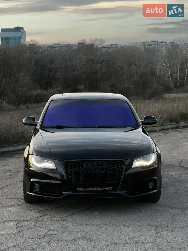 Опис Audi A4 B8 2.0 Quattro (Максимальна комплектація, led оптика, автосвітло, двозонний клімат і т.д) На пробігу 186 тис. замінено свічки, котушки, клапан ВГК, масла та фільтри. Двигун працює ідеально. Коробка гідротрансформатор (8ступка) перемикає відмінно без ривків. По машині всі кнопки працюють, клімат заправлений. Замінено лампи в ближньому світлі та протитуманних фарах (світло дуже гарне). Тонування в коло (лобове склеєно в атермальну плівку). Передній бампер від RS версії. Зроблено роздвоєний вихлоп, насадки Akrapovic, видалено каталізатор і перероблено всю вихлопну систему (приємний звук). По кузову без іржі, є дрібні сколи та сліди експлуатації. Диски з широкою гумою r18/245/45. Переоформлення. Торг мінімальний, тисячами не торгуюсь.