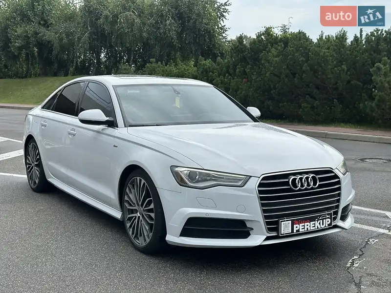 Audi A6 2017 року – стильний та динамічний бізнес-седан із надійним 2.0-літровим бензиновим двигуном та переднім приводом. Автомобіль має спортивний зовнішній пакет S-Line, що підкреслює його елегантний силует та додає індивідуальності. Білий колір кузова виглядає бездоганно та надає авто особливого шарму.