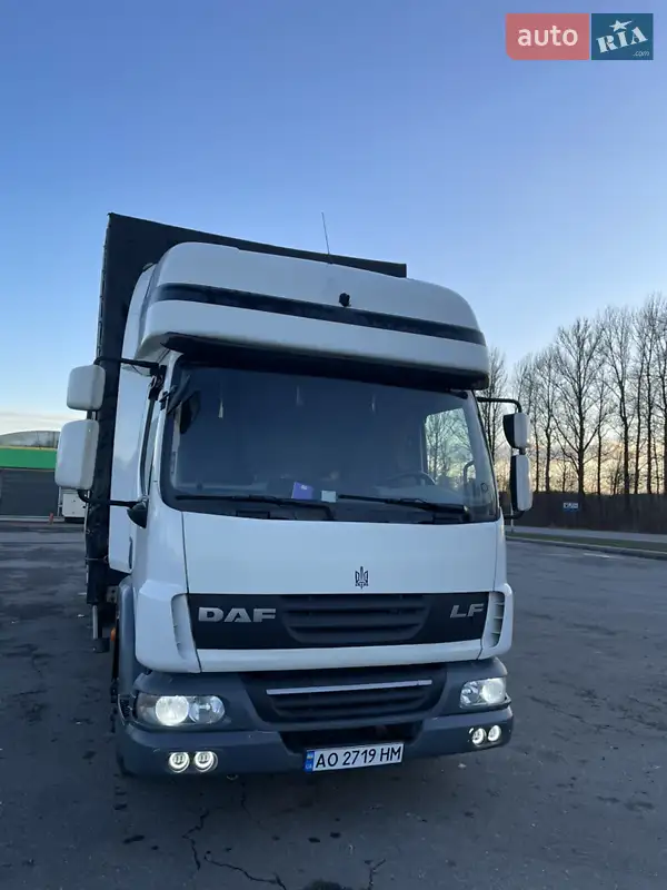 Опис Продам DAF LF 45 Було багато чого замінено нові шкворня і передня ходова частина повністю замінена. Замінені задні тормозні диски і колодки в круг два підвісних підшипники теж замінені.Масла фільтра антифриз замінено 1тис км тому. Помпа термостат і ремінь теж замінено Передня гума нова Задня 70% залишку Довжина буди 7.20-2.45-2.80 Мотор в чудовому стані масла не бере Повна маса 12тон Вантажопідйомність 7тон Два нових акумулятора 110. Страхівка Тех Огляд недавно проводився Вантажівка в рейсовому стані вкладень не потребує!!!Перший власник в Україні