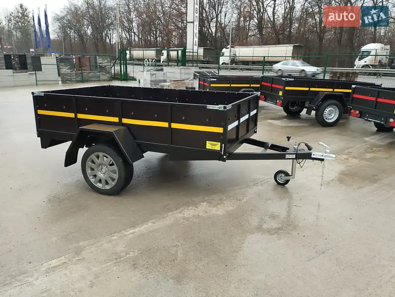 Передній і задній борт відкриваються. Опорне колесо в комплекті з причепом! Колеса встановлено 205/55/16 з титановими дисками БУ. В подарунок іде запасне колесо з таким самим диском! За доплату можна встановити новий комплект коліс, ціну уточнюйте. Рама розрахована на 1500 кг вантажу! Ходова система встановлена на 1200 кг вантажу! В підлогу вварені закладні під такелажні петлі 4 шт. Їх можна докупити і вмонтувати, за потреби. По документах повна маса 750 кг під водійське посвідчення "В" категорії. Світотехніка польська Fristom! За додаткову плату можна купити дуги та тент.
