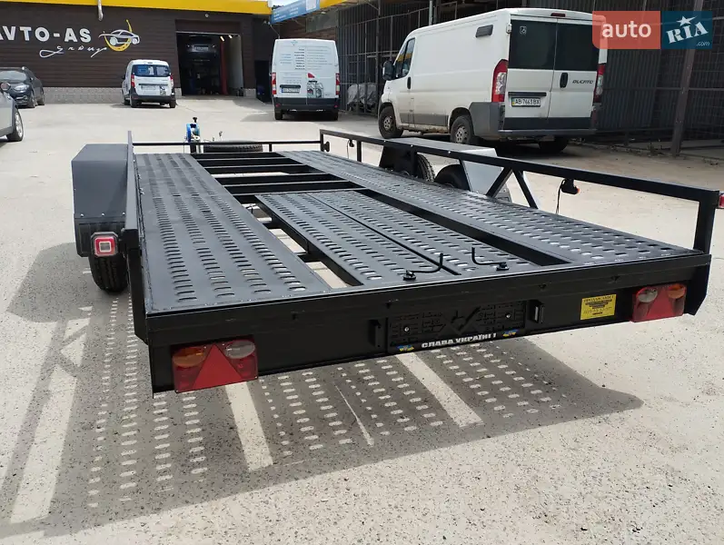 Комплектація на фото Розмір платформи 5х1.96 метри Вантажність загальна 3000кг Можна везти 2500кг Документи вписуються на Вас, від заводу. Крила посилені. По них можна ходити. Тримають 200кг+ Шини вантажні всесезонні 185/80С Ручна лебідка та опорне колесо в комплекті.