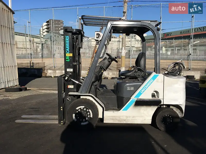 Опис Вилочний автонавантажувач TCM (Nissan), із напрацюванням 3697 мотогодин. Модель: FHGE25T5. Номiнальна вантажопідйомність 2.5 тонни. Максимальна висота підйому вантажу 3 метри. Щогла двохсекційна (duplex) яка не втрачає вантажопідйомності при висоті підйому. Двигун газ-бензиновий, з заводським газовим обладнанням, завдяки чому автонавантажувач у теплу пору року можє запускатись вiдразу на газу, без прогріву системи на бензині. 2018 рiк (напрацювання 3697 мотогодин). Меню перекладено англійською мовою для зручності. Коробка перемикання передач надiйна i найпоширенiша на данний час - гiдромеханiка (автоматична із гідротрансформатором). Обладнаний найсучаснішим двигуном, економічним інжекторним Nissan GK25. 4-циліндровий, робочим об'ємом 2.5 літра і потужністю 54 к. с. який славиться своєю надійністю і невибагливістю і без змін встановлюється на автонавантажувачах по сьогоднішній день і головне ремонтопридатний. Колеса 12 діаметра на ведучiй осі, що покращує прохідність автонавантажувача і збільшує його кліренс.