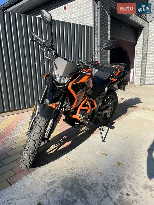 Опис Продам мотоцикл у відмінному стані. Модель 2025 року з оновленим двигуном на 24.5 к. с. 6 передач, повітряно-масляне охолодження. Додатково встановлені ліхтарі на захисних дугах. Мотоцикл майже у новому стані, проїхав тільки 600 км, навіть не пройшов обкатку, більше 4-5 тис. обертів не давав. Перше ТО було на 300км, масло заливалось хадо.