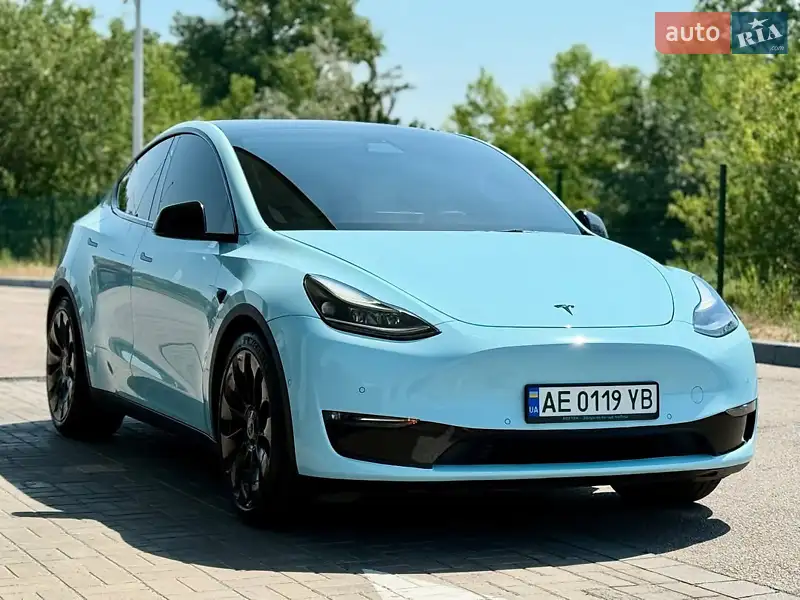Опис Tesla Model Y Performance Tiffany Blue 2022 року. Батарея 82.2 kWt, пробіг 41 тис. км, запас ходу до 500 км. Авто повністю оклеєне плівкою. Комплектація: оновлення системи, тепловий насос, матрична оптика, автопілот, навігація, клімат-контроль, шкіряний салон, панорамний дах, підігрів сидінь, мультируль, камера кругового огляду та інше.