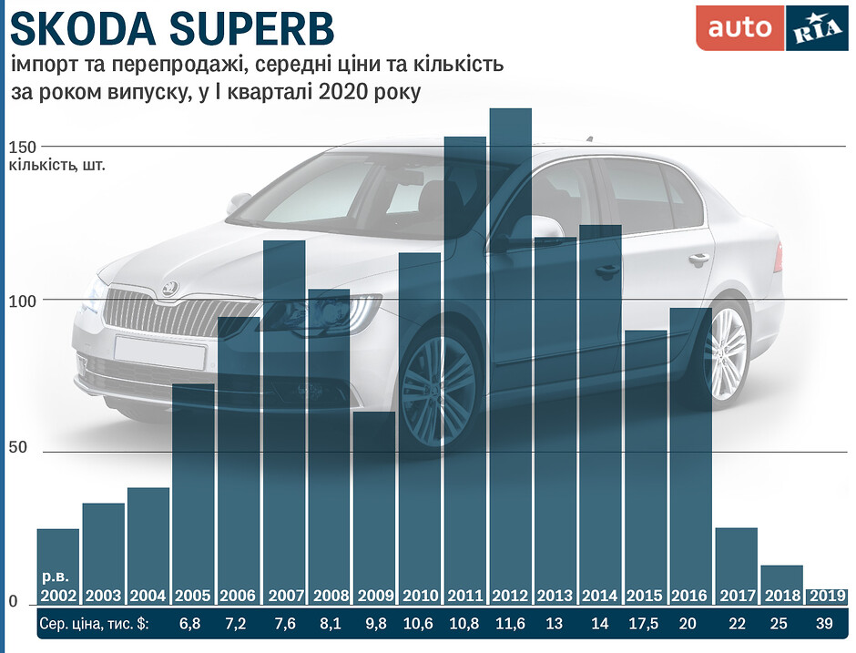 Обсяги продажів на вторинному авторинку свідчать, що з-поміж автівок виробництва концерну VAG (D-класу чи близького до нього) найбільший попит в Україні мають VW Passat та Jetta, Audi A6, а з чеського напрямку у «топах» лише Skoda Octavia. На це, звісно, є вагомі причини, однак ще одна модель, яка у повній змозі скласти конкуренцію згаданим, поки залишається за межами навіть першої двадцятки рейтингів. Йдеться про Skoda Superb, чиє ринкове досьє ми уважно дослідимо цього разу. Забігаючи наперед, скажемо, що увагою ця модель обділена незаслужено. Але давайте-но розбиратись з усім по черзі.