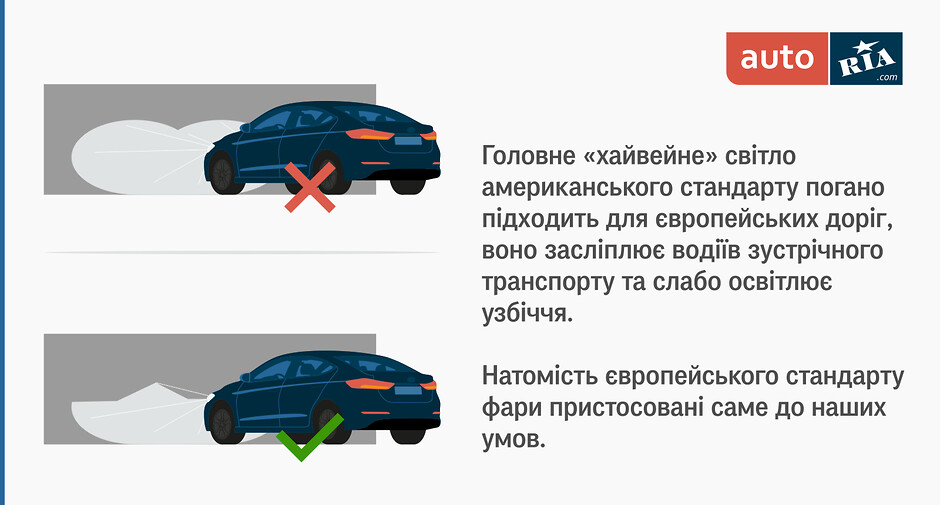 Авто зі США здобувають все більшу популярність в Україні – зараз таких у пропозиціях про продаж легковиків на AUTO.RIA близько 14%, а серед «свіжопригнаних», тобто таких, які нещодавно прибули із-за кордону та були розмитнені, майже 40%. Проте є певні відмінності між машинами для північноамериканського та європейського ринку, про які слід знати тим, хто придбав або планує придбати такий автомобіль, та налаштований безпечно і не порушуючи місцевих правил експлуатувати його в Україні.