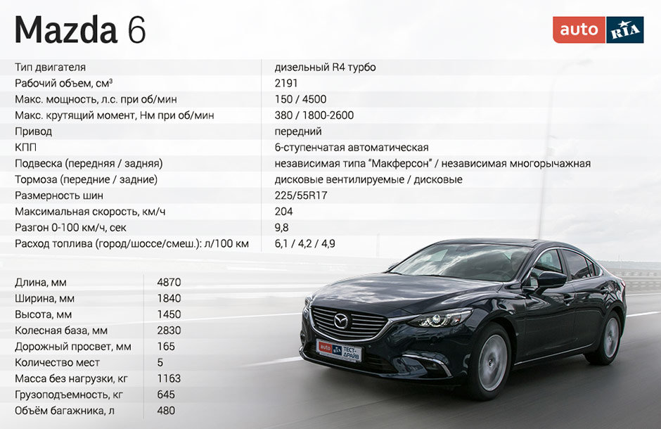 Впрочем, перед окончательным решением стоит учесть еще и такой момент: Mazda 6 с двухлитровым бензиновым двигателем, расходующая по паспорту на 2 литра больше дизельной модификации (в городе), стоит на 150 тысяч гривен меньше. В пересчете на стоимость бензина это примерно 70 тысяч бонусных километров. Хотя дизельных 380-ти Ньютонов будет не хватать – это я вам гарантирую.